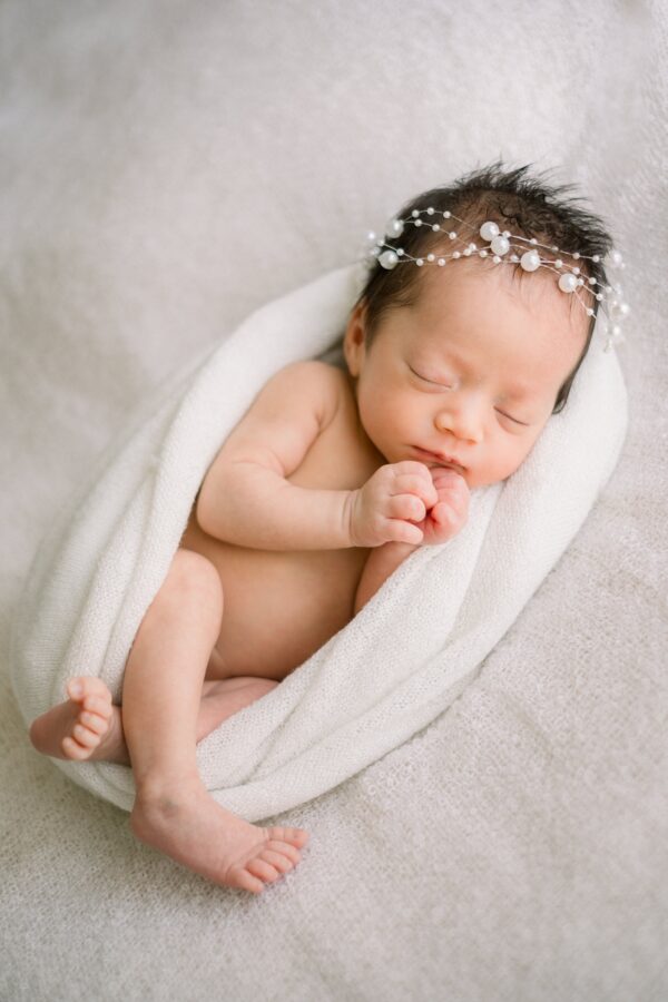 During the actual shoot, I actually cried like 3 times watching her because she just made my little girl look so absolutely adorable and sweet. She had many props and options to choose from and they all were just so perfect for my squishy little girl. It did take me a while to get my baby sleepy enough to pose (lots of nursing, rocking, shushing, etc), but Kristine was super patient. She was so gentle and patient with Brooke during the whole process- really fun to watch her. The photos I received were amazing and Pinterest-worthy. I’ve seen some friends’ newborn photos and they just pale in comparison to the ones I got from Kristine. I highly recommend her as she is a great photographer and perfectionist, which is wonderful for someone in her line of work!!” – Heather L.